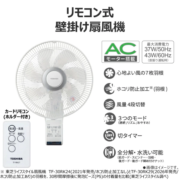 Quạt Treo Tường Toshiba TF-30RK29 – 7 Cánh, Điều Khiển Từ Xa, Gió Êm Chuẩn Nhật Bản